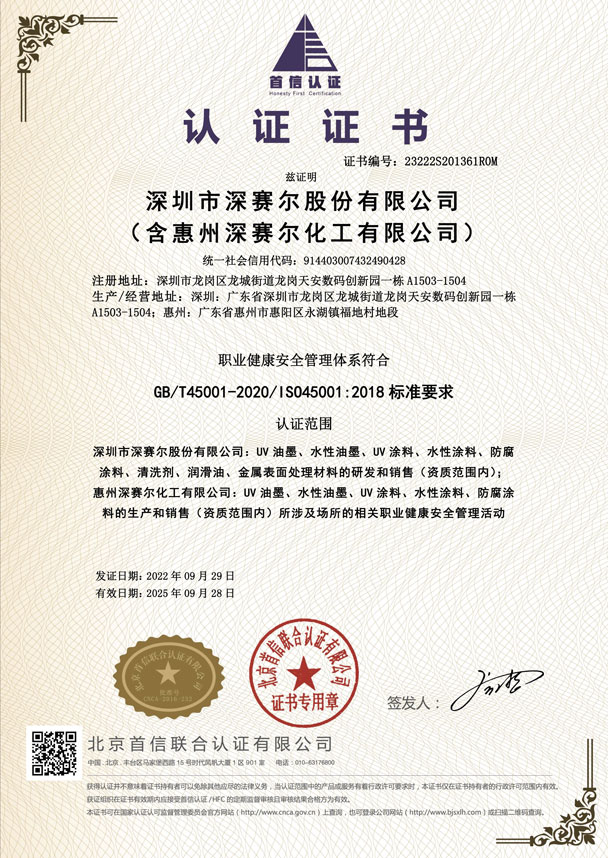 職業健康安全管理體系認證證書
